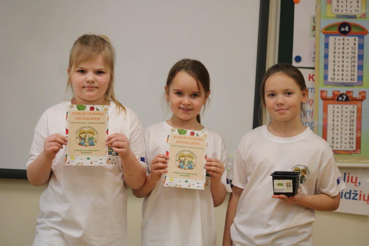Pirmosios veiklos metu kartu su projekto edukatore Vilma Dainiene mokiniai mįslių metodu kartojo vaisius ir daržoves, susipažino su augalo augimo keliu – nuo sėklos iki derliaus, o vėliau patys išbandė sėjimą. Vaikai pasėjo bazilikų, ridikėlių ir žirnių sėklas, kurias prižiūrės klasėje, stebės jų augimą ir pildys auginimo dienoraštį.