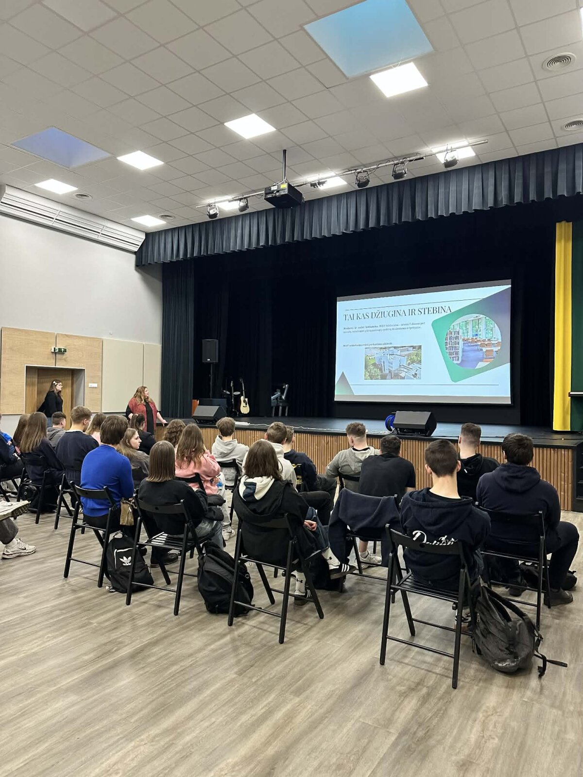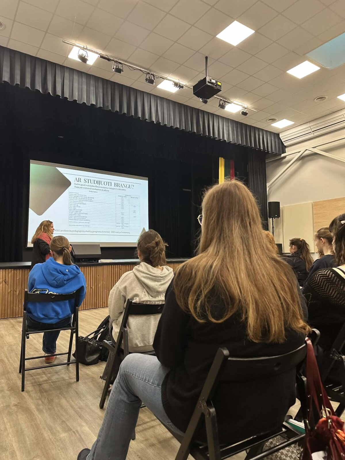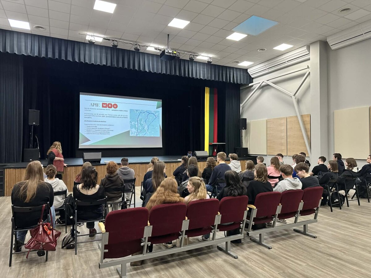 Paskaitą vedė Mykolo Romerio universiteto studentė Rasa Kaminskienė. Ji mokiniams papasakojo apie universiteto studijų programas, priėmimo sąlygas, studentų gyvenimą bei galimas karjeros kryptis baigus studijas.