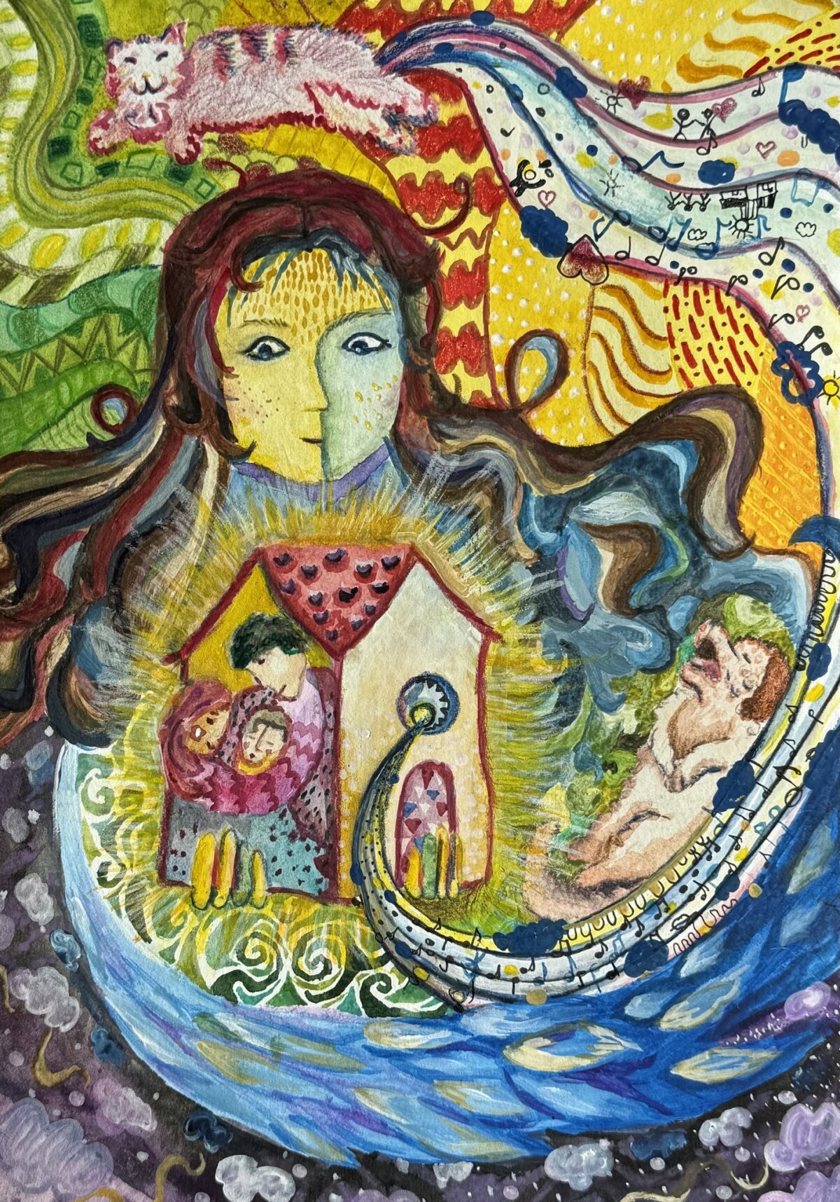 Konkursas kvietė jaunuosius kūrėjus meninėmis priemonėmis išreikšti mintį, kad kiekvienas žmogus yra unikali dovana pasauliui. Eglės kūrinyje atsiveria šviesos, meilės ir gyvybės kelionė – nuo namų šilumos iki plačių pasaulio vandenų. Kompozicijoje darniai persipina žmogaus veidas, šeimos motyvai, muzikos ir gamtos ženklai, kuriantys poetišką pasakojimą apie gyvybės grožį, trapumą ir prasmę.