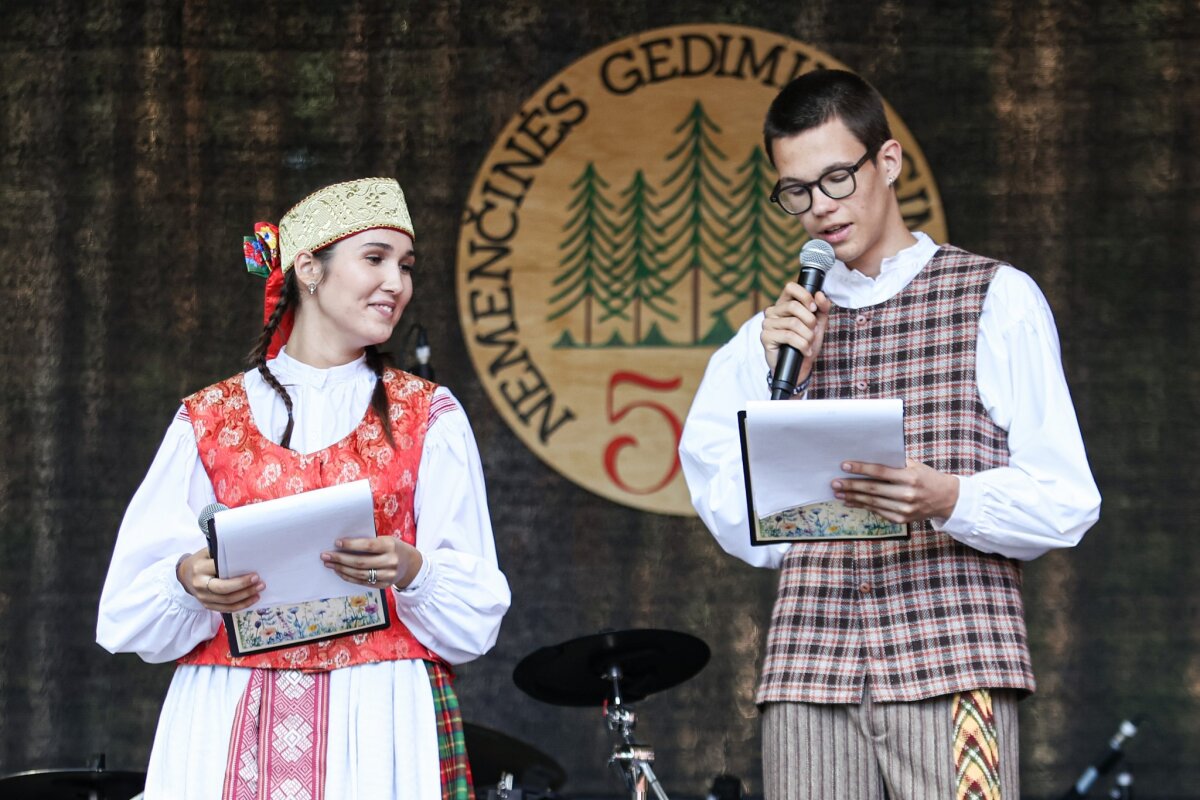 Sugiedojus Lietuvos Respublikos himną ir iškilmingai pakėlus trispalvę, bendruomenę bei svečius pasveikino tautiniais rūbais pasipuošę renginio vedėjai Girius Vinča ir Greta Bruževičiūtė.